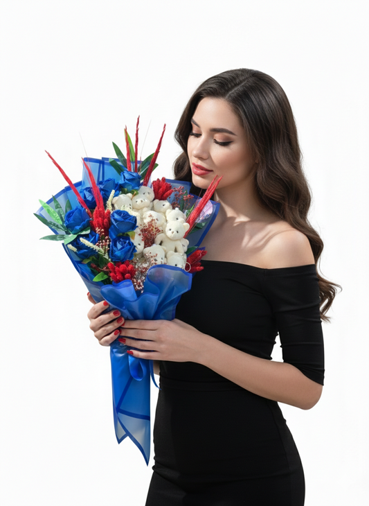 Sonsuz Aşkın Mavi Işıltısı Ayıcıklı Buket