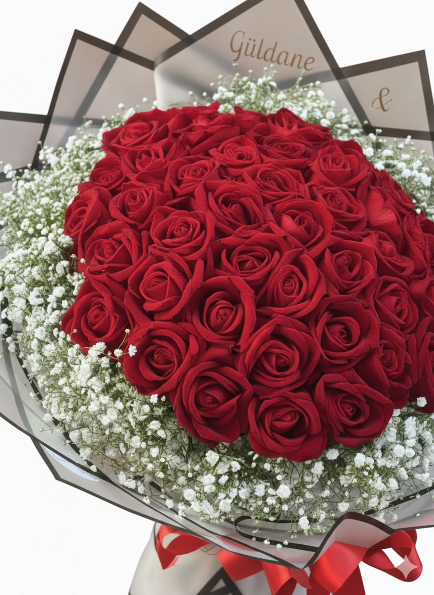 41 adet kadife dokulu premium gül ile hazırlanan bu tasarım, sıradan hediyeleri daha ilk bakışta saf dışı bırakır; dolgun yapısıyla güçlü bir etki yaratır.