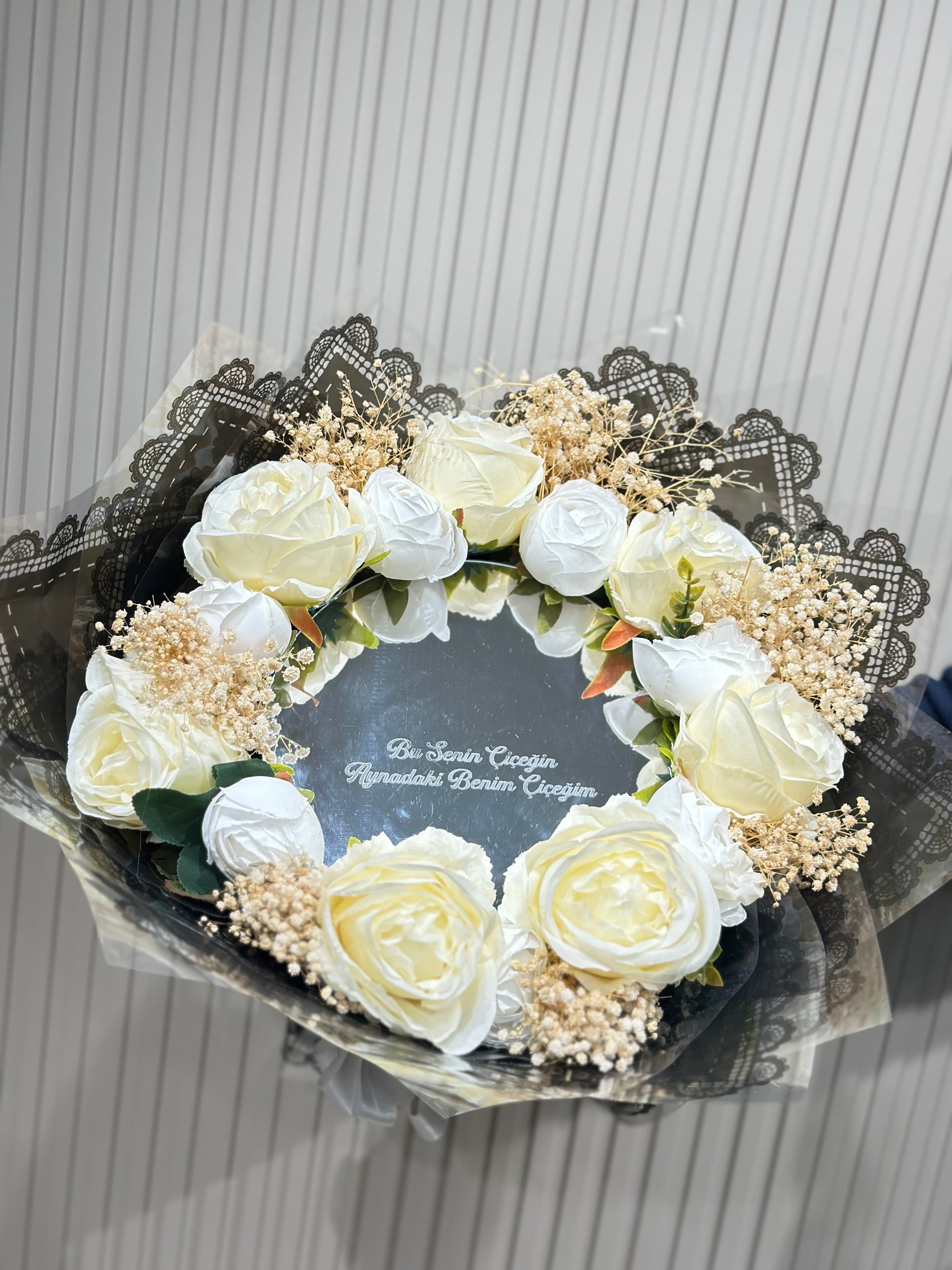 • Saflık ve zarafeti bir araya getiren özel tasarım buket.