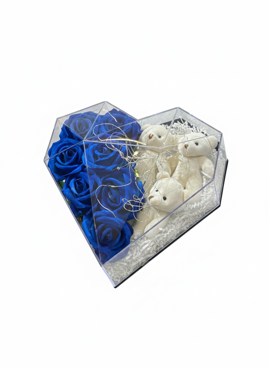 Premium Özel Tasarım Ayıcıklı Gül Aranjmanı - Mavi